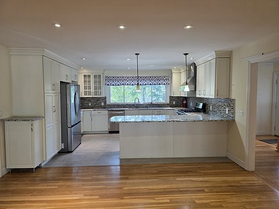 Ranch style single house on the quiet St. Some years ago Kitchen/ Bath room fully renovated . To be fresh painted. 1st floor : 3 bed room and 2 F/bath, Open style kitchen area with granite counter top and center counter top for breakfast area, updated cabinet, Spacious living room with fireplace sliding door to large deck and secured backyard, connected family room with Pechka stove, two entrance ( front & back), Hardwood Floor throughout, Ground level : laminated H/floor, F/room , bonus B/R with door to driveway , full bath , storage room, 1 car attached garage, wash & dryer, Half bath. 6 more parking space on long Spacious driveway . The landscaping is provided by the landlord Renter is responsible for all utilities. No smoking allowed. One small pet is allowed