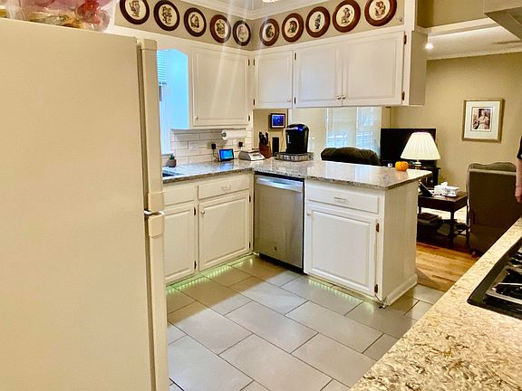 AMAZING LOCATION ACROSS THE STREET FROM HOLES 3 AND 4 OF THE GOLF COURSE... This gorgeous three bedroom, two bath home has so much space for the family to enjoy. Enter this home through the foyer to see spectacular hardwood flooring that runs throughout the majority of the home. To the right is a large formal living room, and to the left is the dining nook. Continue through the dining nook into the kitchen. This kitchen is a cooking lover's dream, with double ovens, and a gas cooktop that can be popped out to allow for a griddle or grill to be utilized. The white cabinets compliment the quartz countertop and custom tile backsplash. The cabinets and pantry area have ample storage for all your cooking needs. The kitchen bar overlooks the family keeping room. This room has a lovely gas log fireplace. All the bedrooms are located down a hallway off the family keeping room. Recently an addition of a 400 sq. ft. great room was added. This area has its own heating/cooling unit, in addition to a Franklin stove. There are beautiful picture windows which overlook portions of the backyard. These are perfect for viewing the variety of bird life that visit here, or for watching the kids or fur babies play in the chain-linked fence area. There is also a 3 room storage building/ workshop on the property. The heating, fireplace, and cooktop are gas. Heating and cooling unit in the main home are 2-3 years. The roof has 5-6 years of life still in it (verified recently by a roofer). The hot water heater is electric and has a circulating pump and is on a timer. Plumbing has been updated within the last 10 years, and The wiring was updated to a low voltage system within the last 4 years. The home is termite bonded and has a new vapor barrier. Schedule an appointment soon before this one is gone!