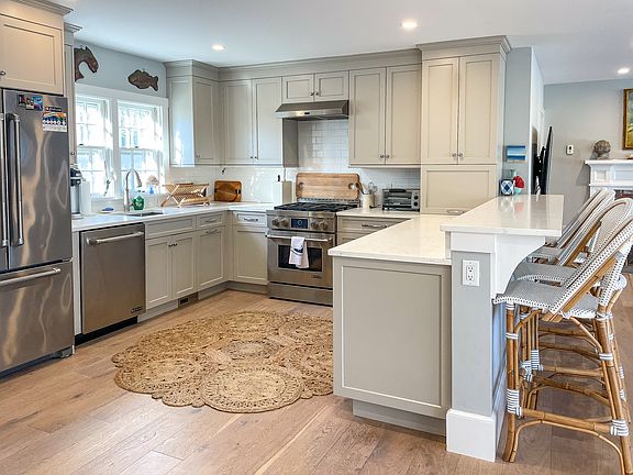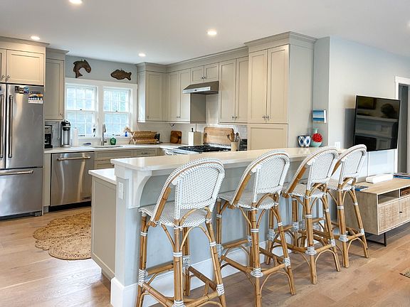 Beautiful 5-bedroom, 4-bathroom home tucked away in Miacomet neighborhood. End lot with privacy backing up to beautiful, wooded land. Close to Miacomet Golf Course, Bartlett Farm, South Shore & Cisco Beaches, Cisco Brewery and 167 Fish Market. Two miles outside of town with easy access to Hummock Pond Road bike path. This home is a stand-alone, single family built in 1968 with charming Nantucket design elements. Since, it has undergone a complete renovation in 2018 and again finishing the lower level in 2022. An open floor plan, high-end materials including oak hardwood floors throughout and modern interior design balance preserved, grandfathered features such as oversized, picture frame windows with modern day, luxury living. The kitchen features Ultracraft pebble gray cabinets, stainless steel Jenn-Air professional series appliances, Quartz countertops with beautiful grey veining and bar seating. It overlooks an open living room appointed around a wood-burning fireplace. Adjacent is a lovely dining space that flows out to a large deck for entertaining.