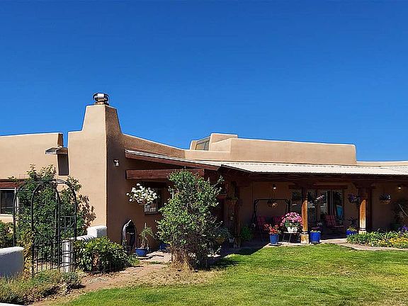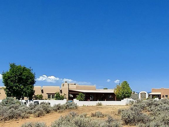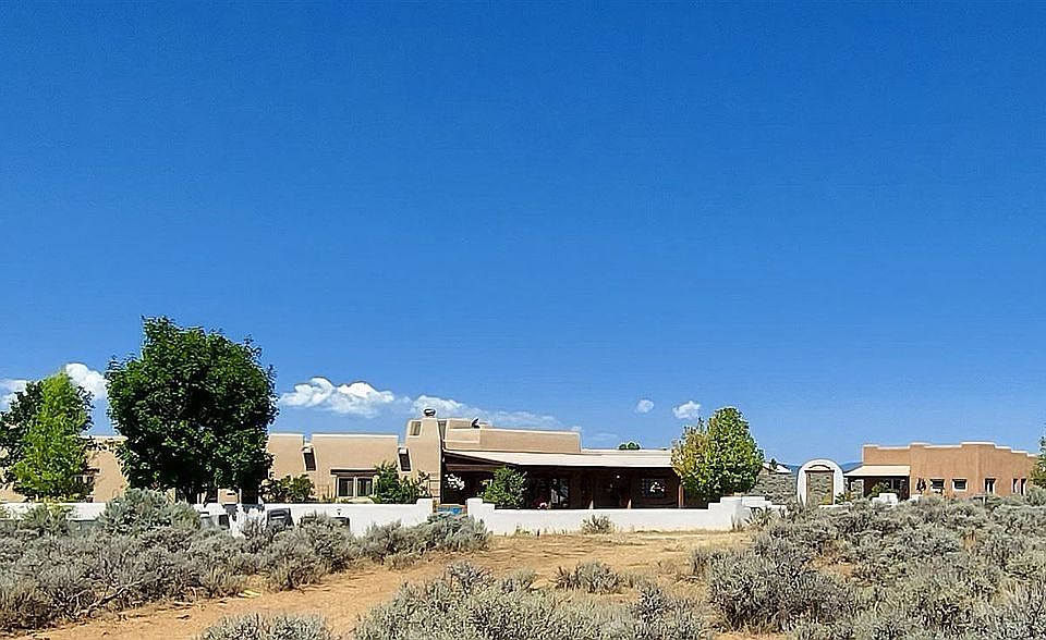 A true delight and extraordinary value on 6+ acres in desirable Des Montes. The two bedroom, 2 bath main house is spaciously designed and features a gourmet kitchen, formal dining room, generous living room, peaceful sun room, and beautiful master bedroom suite, with 3-car garage plus laundry room, office and workshop. The living room, with kiva fireplace, and formal dining room, with built in china cabinets, are each spacious and bright and open onto the sizable covered patio, with expansive western views. The superb kitchen, a chef's dream, distinguishes this home from most others - with Wolf stove and double ovens, a Sub*Zero refrigerator/freezer plus a mini Sub*Zero refrigerators and dishwashers - great light, ample, smartly-designed cabinetry and prep areas and a cozy kiva-style fireplace on the counter-top. The appealing sun room, located just off the kitchen, includes multiple windows that bring in the morning light and display the flowering gardens and mountain views outside and the exposed adobe walls add character to the room. The sizable master bedroom suite is bright, and includes a kiva-style fireplace, a claw tub, vanity and substantial walk-in closet. A separate office and workout room sit just off the laundry room. The spacious two bedroom, 3/4 bath guest house is privately situated separate from the main home, and contains a full kitchen and stack washer/dryer. Both the main home and guest house are enhanced with landscaped courtyards and covered porches and are situated for maximum enjoyment of the outdoors and enjoy pleasing expansive views. The southeast side has raised beds, outside the courtyard for vegetable gardening. The property is located within an area restricted to six acre minimum lot size for low density and privacy, with easy access to Taos Ski Valley or Taos Plaza. This is a rare offering with multiple extraordinary and appealing features and it is not likely to be available for long in this appreciating market.