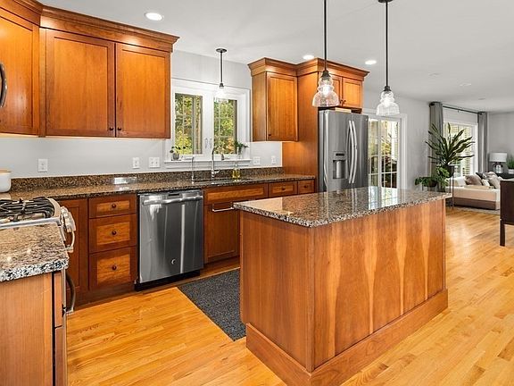- Kit Dscrp: Flooring - Hardwood, Countertops - Stone/Granite/Solid, Deck - Exterior, Breakfast Bar / Nook, Kitchen Island, Stainless Steel Appliances, Recessed Lighting, Gas Stove, Lighting - Pendant