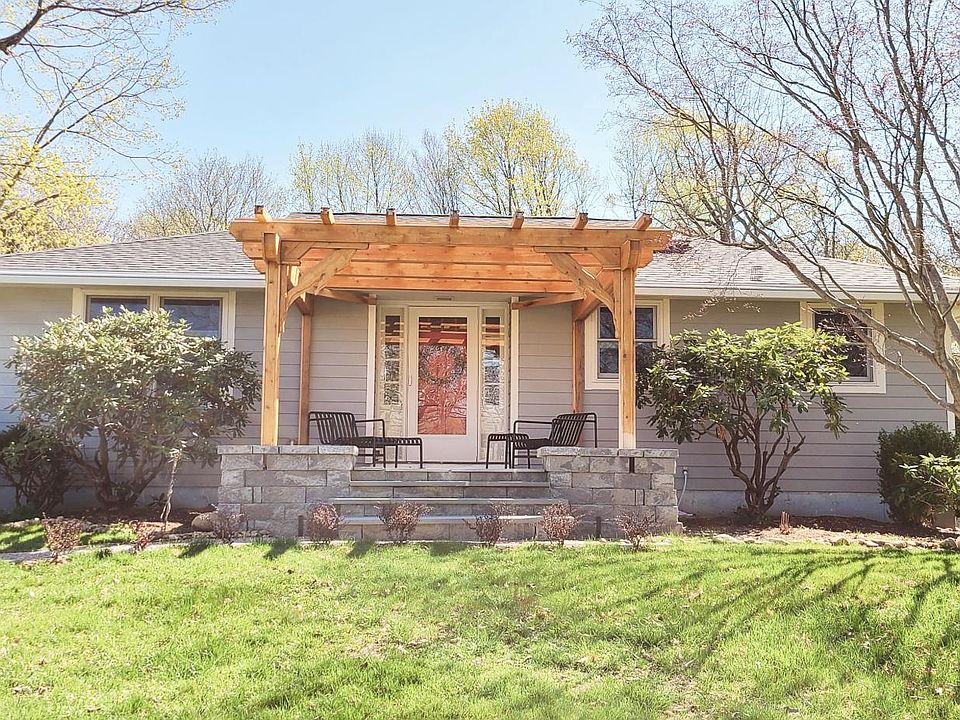 If light, bright and spacious is what you're looking for, look no more! This completely renovated ranch style home is conveniently located just a mile from Guilford center. Open concept living/dining space with hardwood floors and gas fireplace. Gourmet kitchen with breakfast bar and desk area. Master suite with amazing full bath including double vanity, large tile shower and sauna! Second bedroom features vaulted ceilings and stylish barn style doors. Sunroom spills out onto large deck overlooking yard and gardens. Tenant will have access to one of the 3 garage bays. Full unfinished basement with laundry area. Tenant responsible for all utilities. One garage space available for tenant and plenty of open off street parking. Owner will consider a cat(s) but no dogs. No smoking in the home.