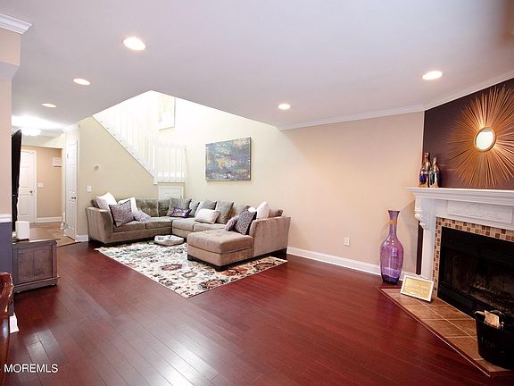 Welcome to Spring Meadows! This beautifully Updated 2 Bedroom, 2.5 Bath Town home is conveniently located in Tinton Falls. The first floor offers a large Living Room with vaulted ceilings, hardwood floors and wood burning Fireplace open to the Dining area. Eat-in Kitchen with SS appliances. Sliders welcome you to the private paver patio. Master Bedroom with 2 closets, newly updated bath in 2021 with a sleek and updated design. Sip your morning coffee overlooking the grassy common area from the balcony right off the Master bedroom. 2nd Bedroom with walk-in closet and additional full Bath. 2nd level laundry space. New roof and siding installed in 2020. Conveniently located close to shopping, restaurants, schools, to be built hospital and Netflix. One car attached direct entry garage & driveway wide enough for 2 cars.