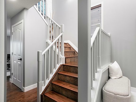 This immaculately kept home is move in ready. The gleaming tiled floors, beautiful hardwood, white wood accents, black hardware + light fixtures compliment each other in this stunning home. Upon entering the front foyer, your attention is immediately drawn to the feature walls. To the left is the entrance to the front attached double garage, main floor laundry + very spacious powder room. The updated kitchen has ample cupboard + counter space + a pantry. The dining room is open to the living room complete with gas fireplace, + large picture window, plus access to the back yard + deck with views of the pond. Head upstairs to the enormous primary bedroom with bay window, walk in closet + 4 piece ensuite. Two additional nicely sized bedrooms + 4 piece bath which is of considerable size, complete the upper level. The finished basement holds a rec room, 4th bedroom + 3 piece bath. Updates include Shingle 2023, HWT 2022, Appliances 2022, = interior paint, ceramic tile, trim, lighting, hardware 2023.