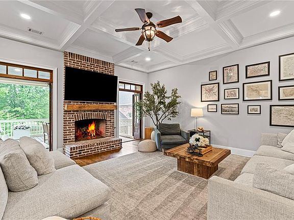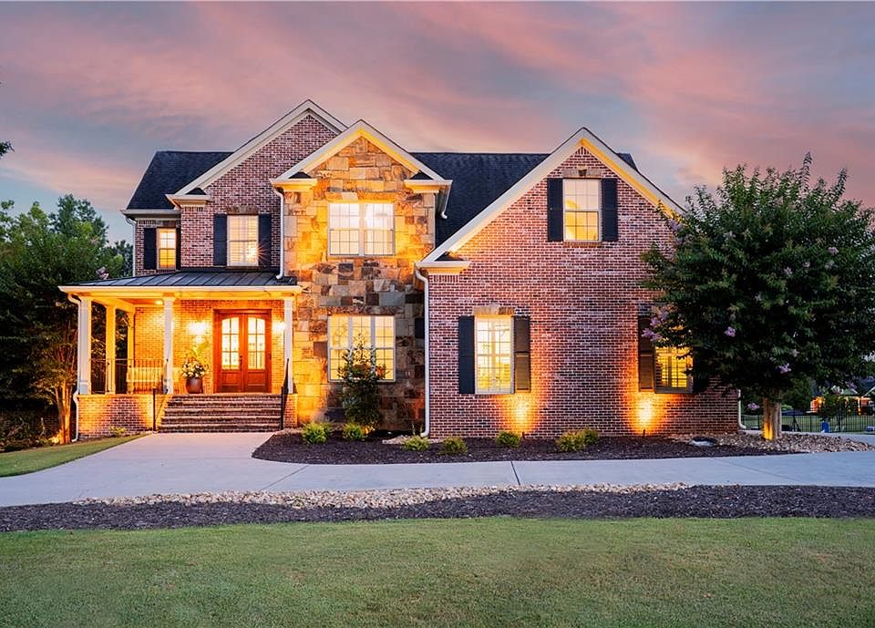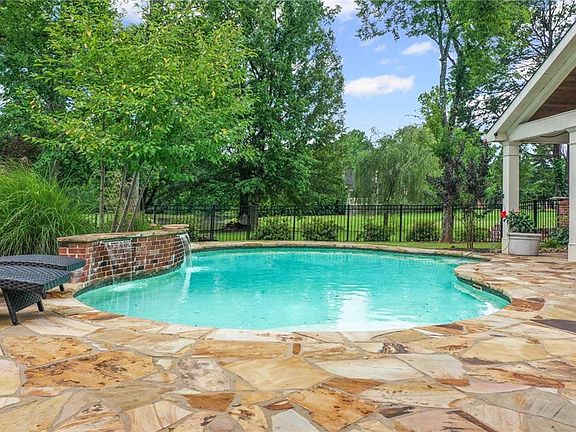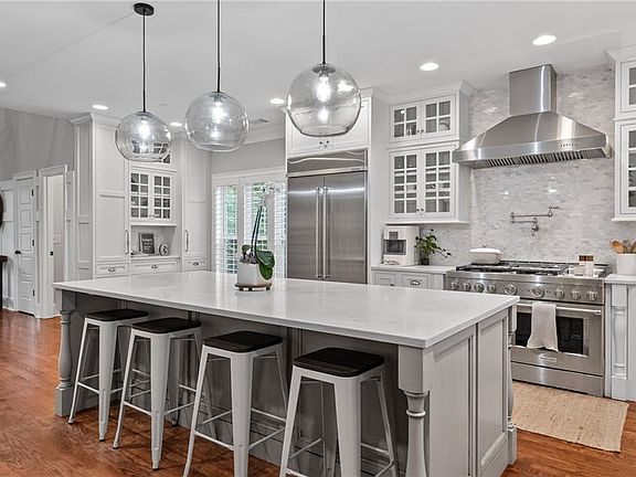 Private luxury retreat nestled on a 1.45 acre level, manicured lot with a stocked pond. This stunning four-sided brick estate showcases an elegant circular drive and a 4-car garage, offering both curb appeal and an abundance of parking. Inside, a grand foyer leads to a formal dining room with custom trim. The heart of the home is an exquisite island kitchen featuring quartz countertops, a pot filler, ceiling-high custom cabinetry with wood and glass doors, a built-in refrigerator, coffee bar, and top-tier stainless appliances — all open to a spacious fireside family room. Hardwood floors run throughout the home, including the luxurious primary suite with a spa-inspired bath, soaking tub, dual vanities, and spacious walk-in closet. The family room leads to a covered back porch overlooking the pool area and offers a grilling deck. Upstairs, two generously sized secondary bedrooms offer private en-suite baths, the third bedroom has access to the baths. The finished terrace level offers a full in-law or teen suite with its own entrance, complete with a fireside bedroom, full 2nd kitchen, family room, gym/flex garage, walk-in closet, full bath, and covered back porch — the perfect multi-generational/teen setup. Enjoy resort-style outdoor living with a heated in-ground pool, flagstone patio, wrought iron fencing, and a covered poolside fireplace lounge — ideal for year-round entertaining. Detached garage offers a dedicated office upstairs, perfect for remote work. Luxury, comfort, and space await. Call today to see this gorgeous home. Sellers offering a $5000 paint allowance for the exterior trim
