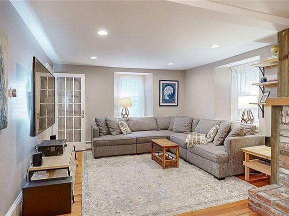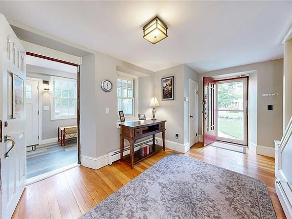 Stone Cottage @ Georgiaville Pond Village. Discover the perfect blend of historic charm and modern luxury in this beautifully renovated stone cottage, built in 1813, and nestled along the tranquil Georgiaville Pond in Smithfield, RI. This waterside gem has been thoughtfully updated, preserving period details while offering contemporary comforts. The first floor features a bright, open layout with versatile spaces designed to suit any lifestyle. The welcoming front entry leads to a fully renovated kitchen, seamlessly connected to a spacious living room and dining area anchored by a cozy fireplace. An oversized home office wing, complete with separate workspaces, overlooks the expansive, fenced-in yard, offering both comfort and productivity. Upstairs, the second floor includes three generously sized bedrooms, a full bathroom, and a bonus flex space, with walk-out access to a stunning outdoor deck and stone patio. Here, you’ll enjoy stunning panoramic views of Georgiaville Pond. Launch a kayak, canoe, or paddleboard for a serene experience on the water, with a charming town beach just a short walk away. This property is a rare find—offering the peacefulness of lakeside living with modern conveniences. An absolute gem!