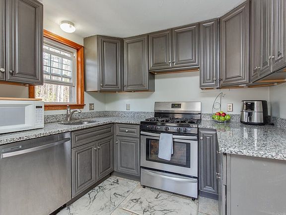 Welcome to Pawtuckaway Farms. A unique condo development of 15 single family homes in the perfect Raymond location. You've got the option of up to 5 bedrooms in this hidden gem! Sitting pridefully on a full-featured, corner lot at the head of the association. So much to love with three floors of living. Features include a new kitchen with stainless appliances, full finished basement with a bonus bedroom, large recreation area and bar complete with daylight windows. The main level has 2 large bedrooms and a newly renovated full bath. The top floor features a large master bedroom with 3/4 bath and balcony overlooking the maturely landscaped lot. There is an additional bedroom/office on this floor as well. Outside, you'll find a large, detached garage, multi-tier deck, workshop shed, above ground pool, volleyball court, koi pond and more. This home has something for everyone and will keep you entertained all year long. Get all the benefits of single family living with the added bonus of managed water/sewer systems. Low fee covers master insurance, roads, driveways (newly paved), septic and managed water source. A short drive to Rt 101, Shopping, Pawtuckaway State Park and the ever-popular Tuckaway Taven. Make this one your own and carry on the traditions of this single-owner home. New garage side entrance door being installed along with shed entry door.