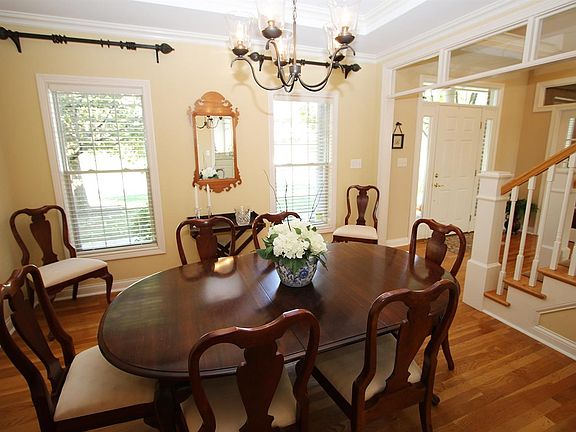 This gorgeous 2-story home built by The Moore Group sits on a fully finished walkout basement with large recreation room and a bar/kitchen area that is perfect for game night, movies, and more! The covered front porch welcomes you into a beautiful foyer leading to a formal living room (that could be used as a home office), den w/fireplace and built-in bookcases, an updated gourmet kitchen (Cambria quartz/stainless/bar), and dining room are perfect for family gatherings. Hardwood floors are found throughout the first level. A double-sided staircase leads to the second floor that offers an owner's suite w/sitting area, jetted tub, double bowl vanities and his/her walk-in closets, along with three additional bedrooms and another full bathroom. The lower level is also ideal for entertaining the youngest of guests with a playroom fit for a little prince or princess! This beautiful home is move-in ready!
