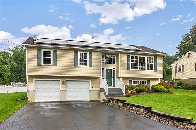 WHY WAIT FOR NEW CONSTRUCTION? This custom Bilevel style home comes with more upgrades than most- cathedral ceilings, central vac, central a/c,( new in 2017),granite counters in the kitchen, stainless appliances, expanded deck (no maintenance Trex decking- on front porch too!), patio,7 zone sprinkler system, fenced yard & so much more! It's Comfortable and Open - Bright & Airy! Located on a quiet street in a small, well established neighborhood, you're not too far from shopping, schools & major NYC commuter routes but far enough to enjoy the peace & quiet that surrounds this home. Finished lower area boasts family room, laundry room, guest bath and french doors to a private patio area. Kids & pets have lots of room to run & play in the large yard and there is a 2 car garage ( new doors in 2017) with lots of additional storage space. What's not to love? Just move in & enjoy!!