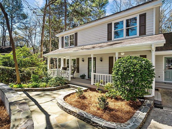 Welcome home! 18 Strawberry Ridge Lane has a rare combination of both sublime indoor spaces and relaxing outdoor spaces. The stacked stone paths and patio, HUGE fenced-in yard, and lovely covered front porch welcome you to the beauty of desirable Woodcroft. Inside, the custom kitchen has it all: high-end appliances (which all convey), gas range, and beautiful breakfast nook with a view of the private backyard. The wide-planked pine floors and wood-burning fireplace bring unmatched warmth to the home. The downstairs open floor-plan invites friends and family to gather. Upstairs, the comfortable bedrooms and closets are GENEROUSLY sized! Located in a cul-de-sac, this home has immediate access to miles of neighborhood walking trails. Both the Woodcroft Club (swim, tennis & fitness) and Woodcroft Shopping Center are easily walkable, providing a cozy small-town feel. Southpoint Mall, UNC, Duke, & RTP are minutes away! This home is an impeccably maintained gem. Freshly painted inside and out, new carpet, and updated fixtures mean you can focus all your energy on enjoying your lovely new home from day one!