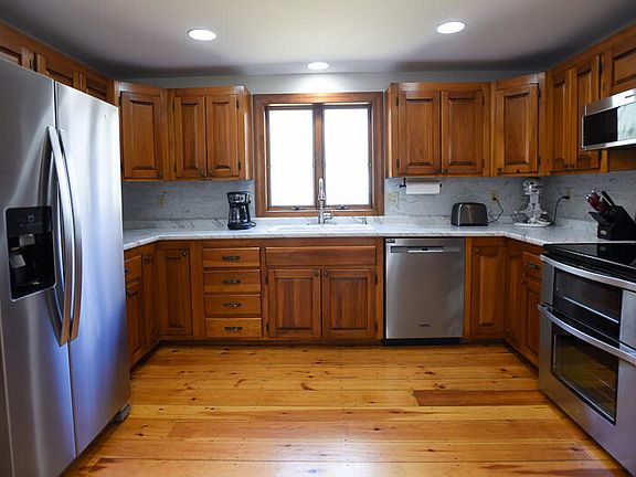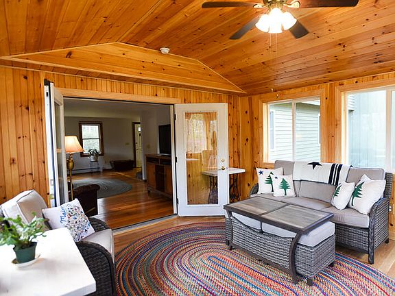 Nestled on a pretty 2-acre lot in a quiet neighborhood, this well-cared for home is an easy commute to points north and south via Maine Turnpike. Spacious mudroom enters into eat-in kitchen that has new counter tops, sink and stainless steel appliances. Front dining area for family meals and great entertaining. Half bath (can easily be made into full by moving W & D) and laundry on first floor. Front-to-back living room with brick hearth and wood stove warms the whole house, saving fuel from the forced hot water furnace. French doors open into a new sunroom (add a heater to make this a 4 season room) to relax and watch the nature in your private wooded backyard. Gleaming wood floors throughout the first floor, stairs, and large, primary bedroom on the second floor. Two other good-sized bedrooms with newer laminate floors, and updated full bath complete the upstairs. Whole house has been freshly painted inside. Attached two-car garage with storage above, and behind mudroom. Nice garden shed for tools or raising chickens. Great, solid home in a location handy to shopping, lakes, Gray Village and easy commute to city of Portland.
