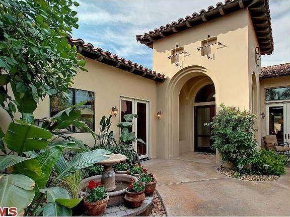 VERY MOTIVATED SELLER! Tuscan inspired gem in Tamarisk Ridge. 4 bedrooms, 4.5 baths with a detached casita. Walled and gated compound with outdoor fireplace, pool and spa, covered outdoor dining, large fire pit, fountain and built-in barbecue. Double door entry. Formal dining room. The living room and family room share a see through fireplace and walls of glass that open to the outdoor entertaining space. Gourmet kitchen with stainless steel appliances, island, walk-in pantry and breakfast area. Luxurious master suite with spa like bath with jetted soaking tub, large shower, dual vanities and large walk-in closet. Two additional en-suite bedrooms in the house. Large laundry room. Oversized three car garage.