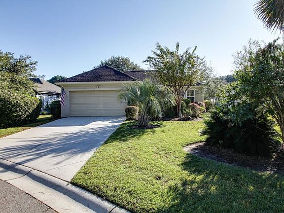 Bigger on the inside than its square footage belies, this 2BR 2B Jamestown Savannah model is located on a large corner lot with bonus ''eyebrow''. Enjoy all the outdoor space from the charming front patio with pony walls or from the enclosed back porch flanked by two patios - one for grillin' and one for chillin'! Kitchen with pantry, breakfast nook, and bar counter opens to great room space with gas fireplace hook-up. Spacious owner's suite. Smooth ceilings. HVAC 2018. Liftmaster 2016. Recently power-washed. New Member Fee does not apply to this property! Property being sold ''As-Is''.