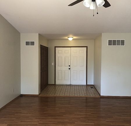 The rent is $1500 per month with a $1500 security deposit. **Already passed St. Peters Occupancy Inspection** This is a 3 bedroom, 2.5 bath vaulted ranch home with a 2 car garage located in the Ft Zumwalt school district. This home has almost 1600 square feet of living space on the main level. The open floor plan in this home is inviting and a great place for entertaining or family gatherings. The home has a tiled foyer leading into the vaulted family room with newer ceiling fan and opens to the breakfast room. Family room, breakfast room and kitchen have laminate flooring. The 3 bedrooms have newer carpet and all have miniblinds and ceiling fans. The master bath and hall bath both have been updated custom tile, plumbing, light fixtures, mirrors. The hall bath also has a newer vanity and newer flooring. The kitchen has newer appliances and plenty of counter and cabinet space. The garage comes with an opener and the walkout basement is partially finished with a possible fourth sleeping area/den and a partially finished bathroom. The yard is fenced and backs to St. Peters park. NOTE: Over the summer, one of parks trees fell on to the fence. St. Peters removed the tree and are in the process of getting bids to repair the fence. Fence will be repaired by St. Peters. This home has fresh neutral interior paint, newer vinyl tilt in windows and vinyl siding for a maintenance free exterior. This is home is move in ready. NO Pets or Smokers please. Here's the process. 1. 2. If you are interested, an application will be emailed to you. One per adult, please. 3. Follow the directions on application cover sheet and turn in. NO APPLICATION FEE; however must have verifiable income and provide 2 most current paycheck stubs.