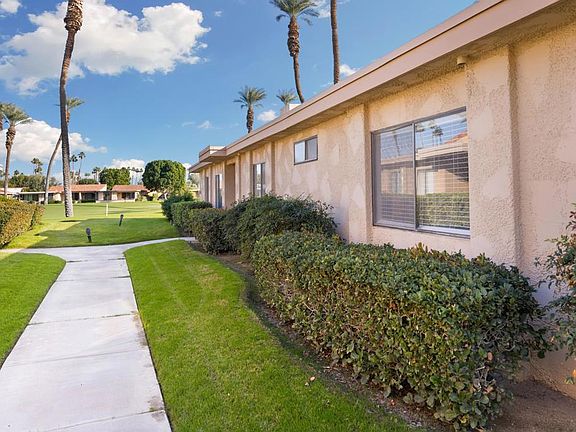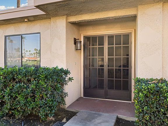 Price Improvement! Barcelona plan. 2 bedrooms, 2 baths, and a den. Tile flooring throughout except for the bedrooms. Converted atrium enlarges the living room. Nicely furnished. Cozy fireplace. Inside laundry. Direct access 2 car garage with golf cart space. Situated on the 9th fairway just steps away from the clubhouse. Ever popular Sunrise Country Club is located in the heart of Rancho Mirage very near to all the world class shopping, dining, and entertainment the area is renowned for. Just 15 minutes from Palm Springs International Airport.