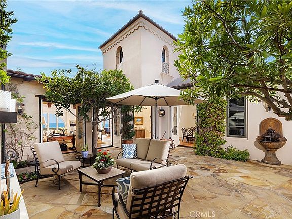 Rarely on the Market, this highly desirable SINGLE LEVEL floor plan affords beautiful ocean & Catalina views. Enjoy an atmosphere of casual elegance and comfort from this unique SANTA BARBARA inspired residence in exclusive Crystal Cove. The home is designed around a private entry courtyard with fireplace & soothing fountain, perfect for entertaining and a lifestyle of indoor/outdoor living. A series of French Doors open to the home’s bright and spacious ocean view interiors. Enter the welcoming great room with volume ceilings, wood trussed beams, a central fireplace and custom wood built-ins. Continue to the Chef’s kitchen with inviting Central Island for gatherings and easy entertaining. Additional features include: Rich wood cabinets, top of the line stainless steel appliances, Caesar Stone counter tops and full backsplash. Beautiful Terra Cotta pavers cover the floors in the great room kitchen and formal dining room. All of the home’s bedrooms have their own private baths including the ocean view master Suite which opens to the Pacific. This immaculate home offers Resort Style living at its very best!! This prime property is located in a 24-hour guard gated community and is walking distance to one of the States most beautiful beaches and Crystal Cove Promenade, with great restaurants and stores. Residents may also enjoy the amenities of The Canyon Club, featuring Jr. Olympic pool, fitness room, community room, three tennis courts and basketball court.