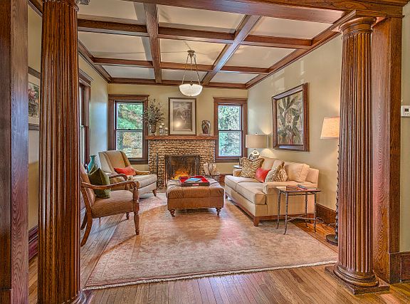 Art's and Craft's Vintage home ! One of the finest homes in Peapack in pristine condition. Featuring gorgeous Chestnut moldings, columns and 9 ft. coffered ceilings. State of the Art kitchen and baths .This is the one buyers point to and say, " I want that home". As you step from the Rocking chair porch into the dramatic foyer you will know you are in a special home. The Heart of the home is a chef's kitchen with Family room area and large center island with French doors to a patio and rear yard. With a versatile floor plan, large walk in closets and lots of storage. Built in cabinets, chestnut floors, a River rock fireplace, stained glass and wonderful finished lower level. The landscaping on this double lot is fabulous, it backs to restricted land and is just blocks to town, Train and fine dining.