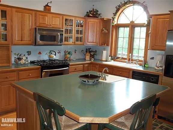 This rustic but yet elegant log home has it all. The home is tucked into the trees on an acre+ lot with seasonal views of the 3rd fairway and green of Eagle Ridge East Course and also only a short distance to the owner's club facilities. The home has an inviting covered wrap around porch and extensive decking on 2 levels. The beautiful hardwood floors run throughout the main level of the home and compliment the floor-to-ceiling 2 story stone fireplace and the lofted beamed ceilings located in the great room. One unique feature of the home is the arched entryways leading into the formal dining area. The spacious kitchen has an eat-at counter/work island with prep-sink, plenty of extra counter space, stainless steel appliances, quality cabinetry (some with glass fronts), built in china cabinets and desk area. The 3 season room is accessible from the charming breakfast nook used for informal meals. The laundry is conveniently located off the kitchen area. The main level also offers a bedroom, bath and office/den. The upper level is highlighted by a spacious loft overlooking the main floor, 3 bedrooms including the master suite with a walk-in closet, whirlpool and double sink. The lower level has several gathering spaces for socializing with family or friends. The 2nd rock fireplace can be viewed from the family TV room or while playing in the ping-pong area. Adjacent to the wet bar is the mirrored exercise room. You will also find another bedroom, bath and a carpeted utility/garden room with a sink on this level. New A/C in 2017. The furnace was new in 2013, newer roof, 2 car garage and mature landscaping. Please note that the interior walls are drywall. The hot tub and inter-com system are no longer functioning. The furniture is easily negotiated at time of closing on separate bill of sale. (js48)