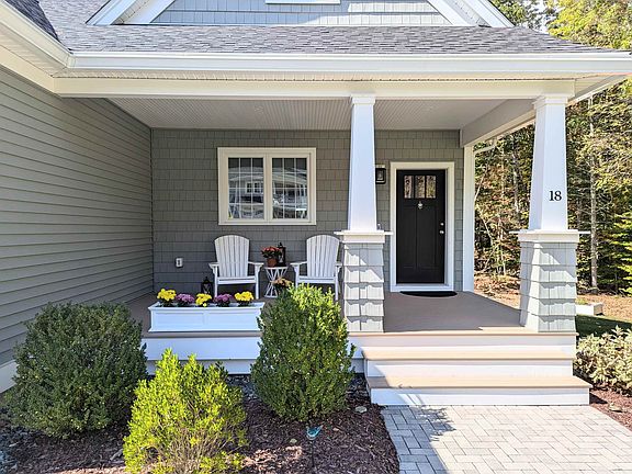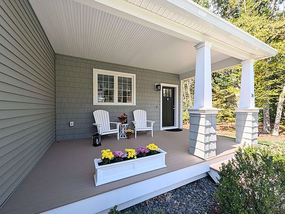 Welcome to 18 Tanner Circle, a beautiful two-year-old Chinburg-built home, nestled in the Milltown Green neighborhood. This home’s curb appeal is enhanced by vibrant landscaping and a spacious front porch. The kitchen is a true highlight featuring a stylish herringbone backsplash, gleaming quartz countertops, and island overlooking the open concept living areas. The dining room offers great natural light and the living room features a tray ceiling, gas fireplace, and slider leading to the expanded composite deck. From the deck enjoy serene views of the wooded conservation land ensuring privacy and tranquility in your backyard. The attached two-car garage features a private entry into the hallway separating the living areas from the primary suite which is generously sized w/ tray ceiling, walk-in closet, and a luxurious bathroom with a custom tile shower with glass surround. Upstairs, you’ll find two additional spacious bedrooms, each with large windows and ample closet space, a full bathroom, and an unfinished bonus room ready for future customization. The walkout basement offers a vast area for storage or potential finishing. The backyard connects directly to the protected open space and trails perfect for furry friends or just exploring. This energy-star home features central air, irrigation, and whole house generator. This sought after neighborhood offers sidewalks to schools and easy access to charming downtown Newmarket. Low $610 per yr HOA fee, fences & Gardens welcome!