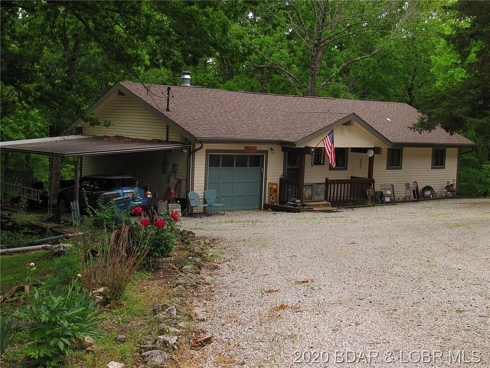 Great lake access home with a slip in community dock. Cute and cozy. This well situated 3 br 1 bath home with large turn around drive, ample parking with a 1 car garage and a carport. Loads of creative landscaping. Nice screened porch extends your summer living area with a timbered view. Comes with a slip in the community dock. Kitchen with eat in bar opens to living area with a wood burning fireplace. Bedrooms are nice sized, and bath is large and contains the laundry area as well. Covered deck at entry. This home has oodles of possibilities and well priced for lake access. Seller is motivated