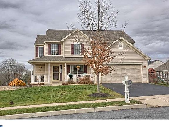 Welcome to 18 Thayer Rd, Birdsboro located in Exeter Twp School District. 4 bedrooms, 2 full, 2 half baths. This former Fairview Park II model home has a lot of extras! Upon entering you will notice the beautiful 2 story foyer filled with light. Formal dining room with hardwood flooring. The kitchen is over sized with numerous cherry cabinets, plenty of counter space, tiled back splash, island, pantry, and eat in area. First floor laundry room and 2 car garage. Open concept living room with gas fireplace rounds out the first floor. Upper level hosts 4 bedrooms and 2 full baths. 14 x 17 Master bedroom has his and hers walk in closets. Master Super Bath has a tiled whirlpool tub, shower stall, and double bowl sinks. The basement was professionally finished and only 2 yrs young. Barely used, it adds around 500 sq foot of living space. Plenty of storage with 2 unfinished storage areas as well as a finished corner closet with built in shelving. Tiled powder room with pedestal sink. All of this is situated on a generous corner lot, one of the larger lots in the neighborhood! Right side of the yard and rear is fenced in. The other side is open grassy area which over looks a tree farm. The wrap around front porch is inviting and 20 x 12 rear deck is another great space to stretch out and relax. The entire house is painted in neutral tones, clean, and move in ready! House is only 8 years young. Radon mitigation system is already in place for your peace of mind. Owner is offering a 55 inch flat screen tv with full price offer. Make an appt today for your private showing! More photos to come Tues 12/1. Stay tuned....