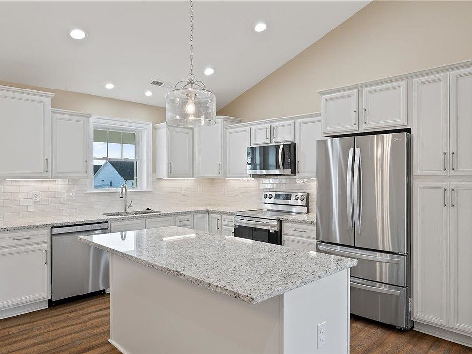 - Double Vanity, Primary Downstairs, Walk-In Closet(s), Breakfast Bar, Eat-in Kitchen, Kitchen Island, Recessed Lighting, Vaulted Ceiling(s)