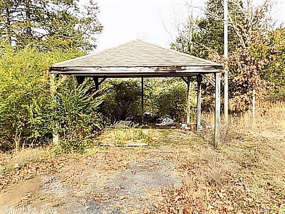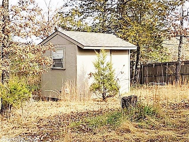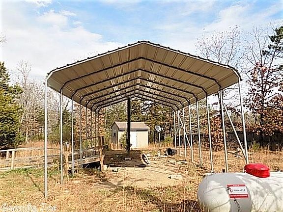 Corner lot, community water system, septic tank, storage building, and metal garage structure.
