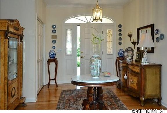 Welcome to this unique home with year round mountain views and is located close to Kanuga Conference, Flat Rock & Historic Hendersonville in the beautiful community of Wilson Farm. There is easy access to area shopping, dining & area outdoor recreational activities. On the main level there is a large primary suite with walk-in shower & tub, kitchen/breakfast area with granite & professional appliances, living room & den/study with gas log fireplace & built-ins, sunroom & laundry room. Double car garage on main level along with long range views from most of the rooms. Lower level boast a large bedroom plus family room & two full bathroom. The flex room can be used as the 3rd bedroom, exercise/craft room. Storage/workshop room plus wine cellar & cedar closet rounds out this level. The lower patio is dry covered w/lower level & upper level retractable awing's overlooking the patio & in-ground pool.