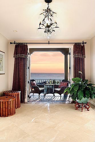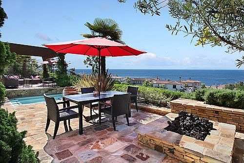 BEAUTIFUL OCEAN VIEWS IN PRESTIGEOUS COMMUNITY OF CRYSTAL COVE! Home offers 5 bedrooms and 5.5 baths with walk in closets and private casita. Family room is open with french doors leading to spectacular backyard ocean views. Backyard features firepit, multiple seating areas, and oversized saline spa with fountain. Interior home has hand carved wood flooring, travertine, and and marble with gourmet stainless appliances in the kitchen with triple edge granite. Additional features are built in home theatre with surround sound and entire home sound system.