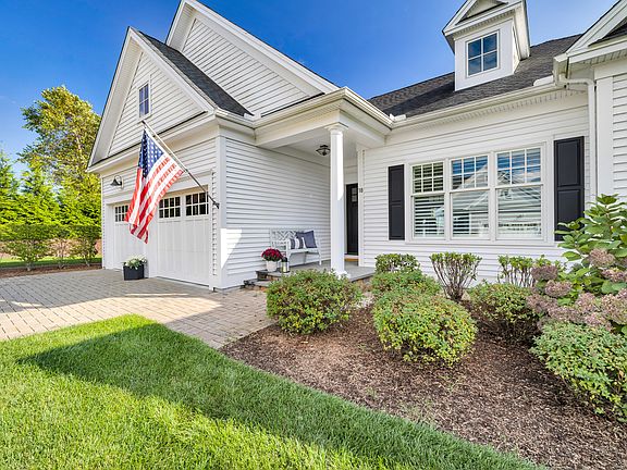 Fantastic opportunity to own a 2-bedroom, 2 full bath end unit ranch with an attached 2-car garage in the highly sought-after community of Tidewater Village. Better than new, this home showcases today's most desired interior finishes and design. The open-concept layout is ideal for everyday living and effortless entertaining. Enjoy sun-filled spaces, hardwood floors, elegant millwork, recessed lighting, and large windows with plantation shutters throughout. Step into the foyer with an oversized coat closet, and access the home office through French doors. The living room features a cozy gas fireplace flanked by custom built-ins and opens via large sliding glass doors to a spacious sunroom with soaring cathedral ceiling, ceiling fan, and gorgeous water views. From the sunroom, step outside to a brick paver patio. The kitchen is beautifully finished with quartz countertops, designer tile backsplash, stainless steel appliances, and a large center island with a deep farmhouse sink. The kitchen flows seamlessly into the dining area, which includes a dry bar and more scenic views. The primary suite offers large windows, a walk-in closet, and a luxurious en-suite bath with a walk-in shower. There's a second bedroom, second full bath with shower, and a full laundry room. A convenient mudroom off the kitchen & dining area includes built-in bench seating, a storage hutch, pantry, coffee bar, and garage access. This move-in ready gem combines style, comfort, and an unbeatable location!