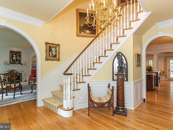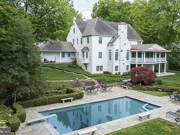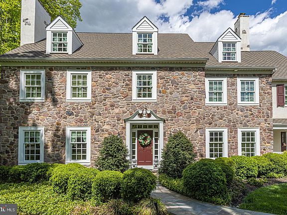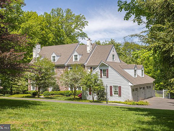 Welcome to 18 Timber Knoll Drive, a charming Bucks County reproduction manor home nestled on almost 2 acres in historic Washington Crossing. Featuring 6 bedrooms and 5.5 baths displaying notable stately architectural details throughout including intricate moldings, wainscoting, columns, coffered ceilings and true divided-light multi-pane windows.  The prominent stone front exterior with dual front entry and flagstone walkway is as timeless and classic as the interior. The inviting 6,700 square foot floor plan and arched entry ways lend to endless allure around every turn of this home. Upon entry, you will find a striking centrally positioned curved staircase and a nearby intimate and spectacularly designed library with walls of impressive floor-to-ceiling custom, built-in bookshelves, anchored by a stunning gas fireplace showcasing Mercer tiles. Across the foyer, the front living room is spacious and features a useful double-sided wet bar concealed by paneled doors, a second gas fireplace, this one fashioned with a marble surround, and a seamless flow into the naturally lite formal dining space with its wall of paned windows, eye-catching tray ceiling, two corner built-ins, wainscoting, and kitchen access. The open floor plan showcases a generously sized great room that streams easily into the grand gourmet kitchen, thoughtfully outfitted with high end appliances, granite island and countertops with seating for 8 bar chairs, and the lengthened coffered ceiling solarium breakfast room, lined with expanded built-in banquette seating/underneath storage accommodating 50+ sit down guests and pleasing space for your hosting needs.  Just off the kitchen, the cozy covered white railing and column accented veranda with its Southern style charm and ambience suggests a welcoming spot of shade and comfort during the warm summer months along with picturesque views of the park-like setting backyard and glimmering pond. The inviting, yet elegant great room with stone fireplace, is drenched with sunlight from the multiple arched transom highlighted windows and allows for scenic views of the private wooded backdrop, several bluestone patios and pool with built in hot tub. A large suite found on the opposite side of the main level can be utilized as a main floor guest suite or perhaps in-law quarters. Completing this level is a powder room, convenient mudroom with storage and back staircase. Upstairs, in the owner's suite, you will find a bright, light-filled bedroom with plenty of space, fireplace, 2 walk-in closets, and a calming en-suite bathroom with jetted soaking tub, dual vanities and walk-in steam shower. Accessed via the owner’s suite or hall, offering wonderful versality, is a nursery/bedroom. The upper level also encompasses a roomy office, princess suite with a newly updated bath, and 2 bedrooms sharing a newly updated full hall bath. Make your way down the wainscoted staircase to the fully finished, expansive walk-out lower level offering amazing multiple entertainment areas including a game space, media area with stone fireplace and full wet bar, wine cellar with 800 bottle wine refrigerator, workout room with cedar dry or steam rock sauna, and steam showered bath with changing room and thoughtfully built-in storage cabinetry for pool guests. Walk out through French doors to a beautiful bluestone patio featuring multiple sitting areas, stone seating walls, lush landscaping and meandering walkways leading to the sparkling pool. This home has been meticulously updated and maintained and offers so many thoughtful selections. Additional amenities include an upstairs laundry room, downstairs workshop, spacious 3-car garage, open staircase leading to a third story three-dormered attic with 8-foot ceilings, plumbing and electric roughed in for additional living space. Located in the Council Rock School District, close to both Newtown and New Hope for shopping, entertainment, dining, and convenient to the I-295 corridor.