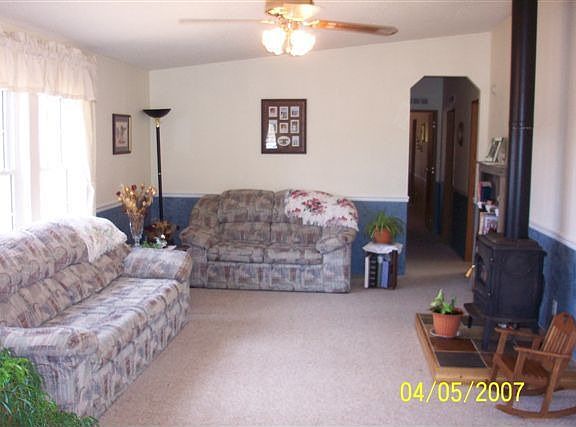 Great Value! Cheaper than rent! Close to 1500 sq ft *3 Bedroom*2 Bathroom*5-piece master bathroom features soaking tub with 12' tile flooring, decorator tiles around tub, double vanity* Gas log stove keeps you cozy* Wainscoting and decorator colors thru out* Double wrapped vinyl siding* Vinyl windows- you'll feel the warmth and tightness of this beautiful well cared for home. 1.61 acres, level with beautiful full view of Pikes Peak.
