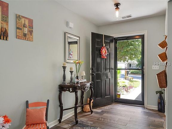 Builders custom touches in this 3 bedroom 2 bath home. Kitchen boast quartz counters wood like tile floors in main areas, marble backsplash, spacious living area with vaulted ceiling, shiplap accent wall and ceiling fan. Dining room, room and a large master bedroom with walk in closet. Enjoy the outdoors with views of lagoon and wildlife while sitting in the screened porch or relaxing on the brick patio. Great location close to Schools, downtown Bluffton, shopping and about 25 minutes to Savannah.