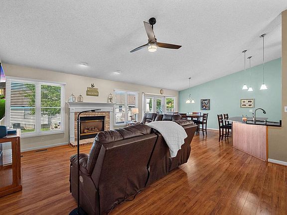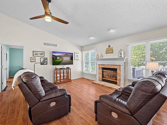Welcome to this stunning 2 bed 3 bath villa in Dardenne Prairie, situated near the Links of Dardenne golf course. The foyer leads to a great room with vaulted ceilings, fireplace, and vinyl plank flooring. The breakfast room opens to a low maintenance deck, and a kitchen updated with custom cabinets, quartz countertops, vaulted ceilings, and luxury vinyl plank flooring. Off the Kitchen is the main floor laundry and 2 car garage. Main floor master ensuite has ceiling fan with light, luxury vinyl plank flooring; master bath has ceramic tile, seperate soaking tub and shower. 2nd bedroom has ceiling fan with light, bay window, vinyl plank flooring. The hall bath has a shower/tub combo. The lower level is finished with a bar, large rec room, sleeping area, and full bath.