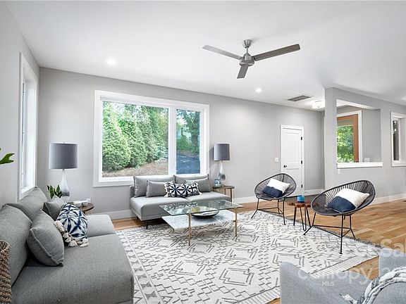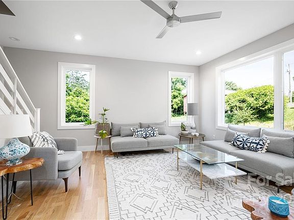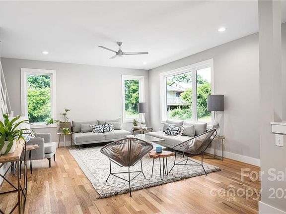 Brand-new GreenBuilt and Energy Star home on a tucked-away lot in East West Asheville by JAG Construction. A stone's throw from the River Arts District, West Asheville and Downtown, this charming home features an open plan with oversized windows for great light. Modern kitchen boasts granite counters, stainless appliances and a beautiful tile backsplash. Large island with a breakfast bar opens to the sun-filled dining and living area. Covered side deck with wooded views and is perfect for entertaining. Bright primary suite features 2 closets, ensuite bath and vaulted ceiling. Two beds with vaulted ceilings, a 2nd bath and a linen closet upstairs. Daylight walkout basement designed for Homestay/Airbnb (buyer must confirm eligibility with City of Asheville) has 2 entrances, bed, bath, 2nd living area and is plumbed for future kitchenette. Enjoy outdoor living from your front porch that wraps around to the spacious side deck. Low maintenance, durable materials. See brochure and video.
