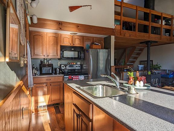 - Kitchen Island, Kitchen/Living, Natural Light, Natural Woodwork, Vaulted Ceiling(s), Walk-in Pantry