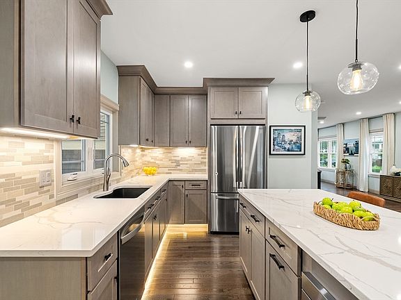Exquisite 2022 Gut-Renovated Colonial tucked away on a tree-lined street in highly sought-after West Medford. This 4 plus bed, 3.5-bath home is the perfect balance of luxury and livability. A sun-filled open layout features a stylish living room featuring a custom wood slat accent wall and built-in electric fireplace. A chef’s kitchen w/ quartz countertops, shaker cabinetry & a generous island that seats 4, a separate dining area and powder room and double entry closets complete this level. Upstairs you will find a primary to accommodate king bed and furnishings w/ 2 step-in closets, an en-suite w/ double vanity, rain shower along with 3 well appointed bedrooms & a bath. The lower level has a guest room or office, family/play/fitness room, and another full back with walkout to the back yard. Enjoy effortless indoor-outdoor living with direct access to a fenced backyard, complete with a deck, patio and storage shed. Seconds to Commuter Rail, Easy access to highways & the Fells