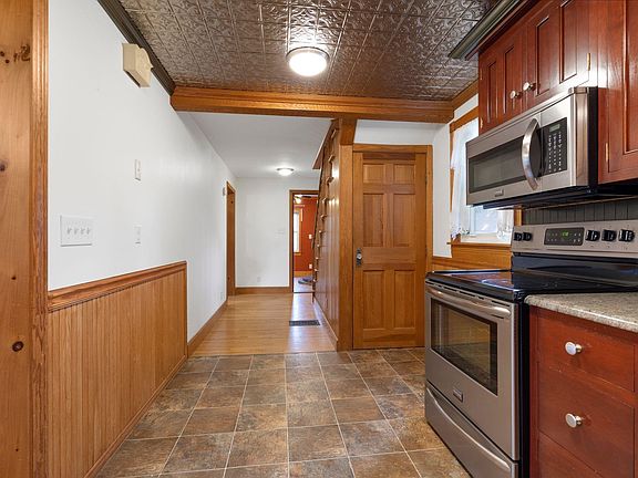 You don't find detailed work like this very often! This spacious New Englander has beautiful, detailed hardwood floors spanning the first floor main living areas and both bedrooms. The kitchen has cherry cabinets, granite countertops, stainless steel appliances and extraordinary tin ceilings. The first floor also has a second living room, or office area, with a gas fireplace. Conveniently, the first floor also has a laundry area in the mudroom. Natural sunlight bathes the entire home. There is additional storage space in the third floor walk up attic. This double sized lot also had road frontage on Acorn Street as well! Great commuter location between Portland and Windham. This property also has a great rental history. Showings begin at the open house this Sunday, October 23rd from 10 am to 12 pm.