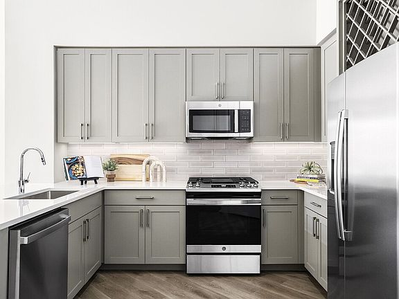 Luxury plank flooringWasher and dryerStainless steel appliancesQuartz countertops