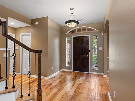 Welcome to the mecca of shopping, dining, and award-winning schools! This home is sits within walking distance to the pool, park, courts, & miles of scenic trails. The curb appeal shines through w/ a welcoming covered front porch. You'll love the open layout w/ soaring ceilings & hardwood throughout! The family room is a showstopper, w/ a cozy fireplace w/ views of the lush, tree-filled backyard. The primary suite is a retreat, complete w/ dual vanities, & a spacious walk-in wardrobe! Upstairs, a fantastic game room awaits, featuring a custom built-in bench & shelving unit, plus a stylish brick accent wall! Outside a covered patio and sitting area. Even your four-legged friend gets a treat with a built-in dog door leading to the yard.