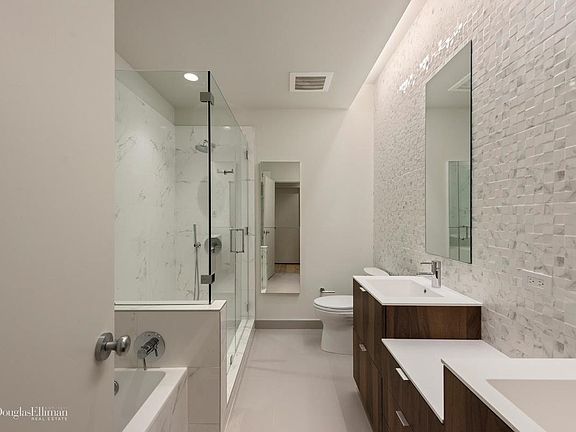 18 Vanderbilt Avenue is a brand new, never lived in, 3,000+ square foot single-family home. It is expansive and efficiently designed with four bedrooms, two full and two half bathrooms, media room, large laundry room and garden with patio. Welcome to Brooklyn townhouse living 2.0! All floors of this townhouse are 7-inch-wide DuChateau natural wood. There is individually controlled zoned central heating and cooling throughout. The first floor is spacious and open creating a generous dining area and a large living area with open kitchen including an island topped by Frosty Carina Caesarstone with counter seating, stainless steel appliances by Betrazzoni, Bosch, Liebherr and a Giagni faucet. The living area opens directly onto the patio with extra wide sliding doors and screens for seamless indoor/outdoor living. The backyard is perfect for a summer BBQ (gas grill supplied) and is outfitted with electric and water hookups. The second floor has two bedrooms, a full bathroom, and a large laundry room. The laundry room comes equipped with a LG 30-inch washer and gas dryer, sink and ample storage. The third floor features the expansive master suite and a fourth bedroom/den. The en-suite master bathroom has a deep soaking tub, heated floors, double vanity with Corian sinks, and glass shower stall with Grohe fixtures. The lower level media room has a half bath and multiple storage options. 18 Vanderbilt Avenue is ideally located adjacent to the vibrant Brooklyn Navy Yard with Building 77 across Flushing Avenue. This one-million square foot building received a comprehensive $185 million renovation transforming it into a state of the art industrial/manufacturing, tech and design hub with the venerable Russ & Daughters as an anchor tenant. The nearby shopping and dining thoroughfares of Clinton Hill and Fort Greene are waiting for you to explore and enjoy.