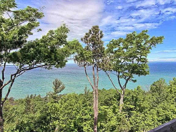 A rare find as one of the most distinctive and spacious custom built houses at The Homestead Resort, 18 Vantage Pointe boasts a spectacular, panoramic view of Lake Michigan's Sleeping Bear Bay. Located in an exclusive ridgetop area of the resort, this 4,544 square foot three level contemporary home offers an expansive open floor plan featuring a mission-style interior with two separate living areas that offer an ideal place to entertain guests and family. Features include five bedrooms with a main floor master suite, four and a half baths, two kitchens, three fireplaces, library/den, family room, office, two laundries, a large deck overlooking Lake Michigan, a walled-in private patio and garden and an oversized two-car garage. Custom details are found throughout, including expansive windows and skylights, extra wide stairways, heated tile bathroom floors, and custom closets. This stunning home offers a four-season resort lifestyle of relaxation, entertaining, and recreation including skiing, golf, tennis, swimming, boating, biking, and hiking. It is steps away from the national park, a quick walk to the beach and has easy access to the extensive Heritage Trail that offers groomed cross-country skiing in winter and biking and walking during other seasons.