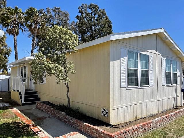 Welcome Home! This lovely 1,344 sq ft home features three bedrooms with two bathrooms and is located in the highly desired Mission Oaks area of Camarillo, California. The spacious cook's kitchen has a huge, gorgeous eat-in breakfast bar and opens up to the dining room - it's the perfect spot for entertaining! The primary suite offers a walk-in closet, ceiling fan and a sparkling en-suite bathroom with a separate shower and a large soaking tub! On the opposite side of the home, there are two nice sized secondary bedrooms with ceiling fans, a den area and a full bathroom with a shower/tub combo. In addition, there is a great room/living room (currently being used as an office), an interior laundry room with a washing machine & clothes dryer included. Other features include central A/C and the property backs to open space. This all age park boasts a sparkling pool, spa & other amenities for just $1,589 a month in space rent.