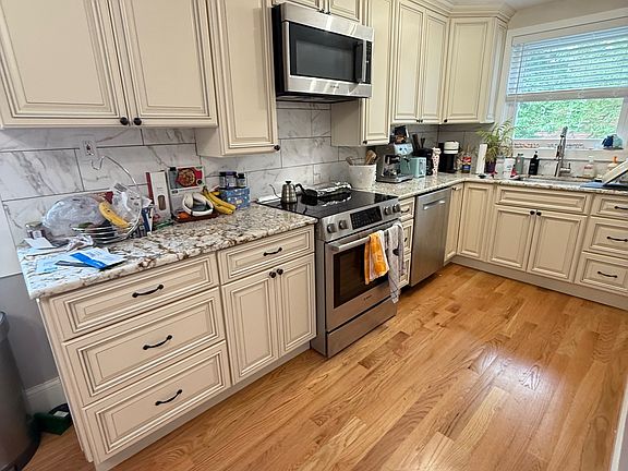 Look No further !! This stunning 3 bedroom has everything you want. This townhouse style Bi-level is situated on the second and third floor of a bi level house. Separate Entrance leading upto the second floor which open up to a large living room and formal dining room with extra large Bay windows . Renovated kitchen with granite countertops- SS appliances - Dishwasher- In unit laundry - Private Deck off the living room. the second level has the three bedrooms which are mostly equal sized and will fit queen bed- Desks and bureaus along with night stand. There is a beautiful patio with Gazebo shared with the downstairs unit. Move in 9/1