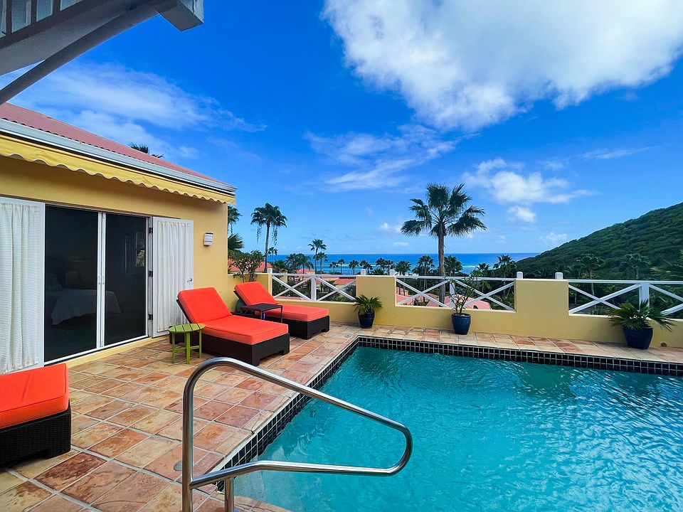 FOR COMPS ONLY! Spectacular south facing 2BR/2BA end unit villa with amazing full sea views! Large sunning & dining deck! Quiet & private with amazing breezes.This property has expansive southern views over the Caribbean Sea. Within walking distance to fabulous white sand beaches & a nine-hole golf course. Beautifully decorated with amazing breezes, this villa has a lovely private pool with a spacious private gallery for relaxing or entertaining. Gated entrance and on-site management make for a safe, secure and easy lifestyle! Solar pool pump, UV water filtration, new Sunbrella retractable awnings and granite kitchen complete this turn key villa.