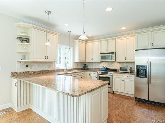 Pristine, turn-key 3 bedroom, 2 and 1/2 bath home located in desirable Grumman Hill Village. Gorgeous, private and level backyard. Best location in complex. Beautifully updated kitchen, new roof and gutters, new hot water heater, freshly painted, city water, sewer connected. Hardwood floors throughout 1st floor, and wall to wall carpeting throughout the 2nd. Three bedrooms upstairs, with possible fourth bedroom or office. Separate laundry room. South Wilton location for commuting and convenience. Nothing to do but unpack and enjoy