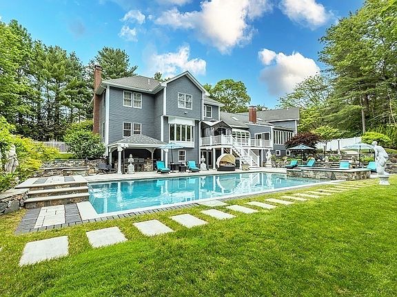 Privately sited in Dover's coveted walk-to town Taylor Estates neighborhood, this impressive Colonial offers timeless design and resort-level amenities.The home boasts lots of natural light and beautifully connected living spaces. Designed for both refined living and everyday ease, there's space for everyone to enjoy in this 6,800+ sf home.The sunny kitchen with granite counters, stainless appliances and delightful sunroom opens to to a spacious family room with handsome fireplace and vaulted ceiling.The formal dining room overlooks the gorgeous pool area. Upstairs you'll find a deluxe primary suite with cathedral ceiling and three additional bedrooms. The expansive, finished, walk-out lower level offers great space for leisure activities. Special highlights include a private show-stopping home theatre with comfortable, elevated seating, kitchenette and half bath as well as fabulous back yard oasis with incredible pool with integrated hot tub, waterfall and outdoor kitchen. A MUST SEE!