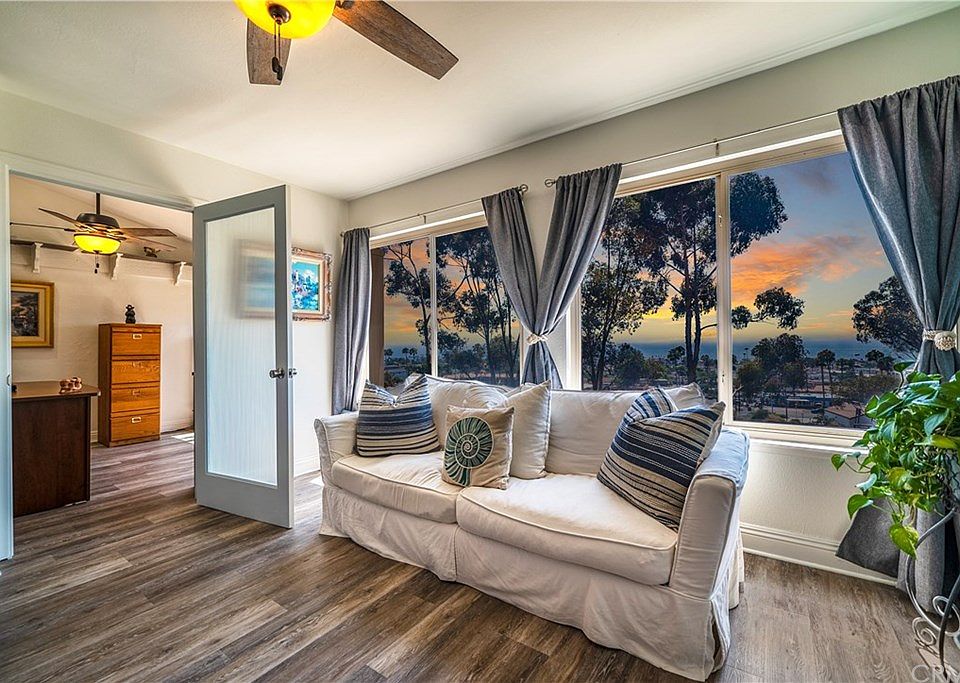 PANORAMIC OCEAN VIEWS OF CATALINA ISLAND in an updated Townhome located in the highly sought after, private community of Seaview Townhomes. As you pass through the foyer, you enter a spacious living room with new vinyl floors and an updated kitchen. With a glass enclosed patio you can enjoy and unwind at the end of your day as you watch the beautiful sunsets fading behind Catalina Island. When you make your way to the master bedroom you will find a romantic fireplace and bonus space that can be used as an office or luxury retreat with magnificent Ocean Views. The upstairs bedroom could also be turned into an office with panoramic views of Catalina Island. The association includes access to an in-ground pool and spa alongside a picnic area and tennis court for optimal entertaining. Since the location of this home allows you the freedom to Walk to Downtown for shopping and restaurants, you can truly immerse yourself in the San Clemente Lifestyle!