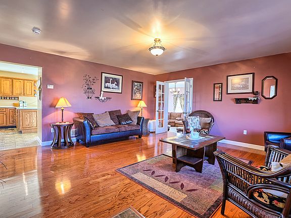 Horses Allowed! Custom built 2 story on 7.6 clear & wooded acres w/walking trails, small stream. Front porch boasts views of the mountains. LR w/wood floors opens to eat-in kit, brkfast bar. 1st fl office w/ 1/2 BA. Freshly painted FR, new carpet. Huge Master Suite offers sitting room, jetted tub. 2nd Fl Lau. LL game room & 5th BR/playroom. 2 car att & 2 car Det 24X32 garage! Garden w/ strawberries, blueberries! Geothermal heat!