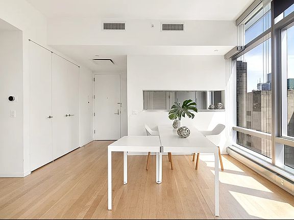 The ensuite, five-piece primary bath is a relaxing retreat. Ample closet space and central air conditioning/heating add to the comfort. Located in a new building near Rockefeller Center, this residence offers the ideal blend of Midtown energy and Manhattan elegance. Step outside and find yourself moments from exceptional restaurants, world-renowned shopping on 5th Avenue, museums, and theaters. The building boasts first-class amenities and services, including a 24-hour doorman and concierge, a large fitness center, a dining room and lounge with a bar, a fully equipped professional catering kitchen, a cigar smoking club room, two beautiful courtyard gardens, and a Wi-Fi-enabled business center and conference rooms. Contact us today to schedule your private viewing!
